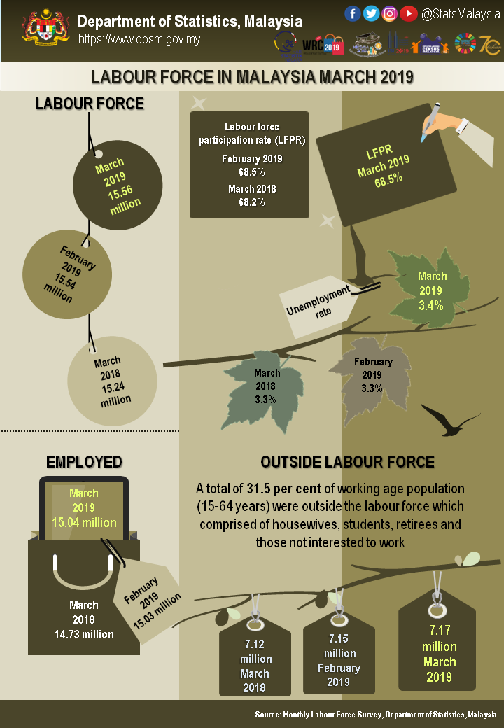 Key Statistics of Labour Force in Malaysia, March 2019