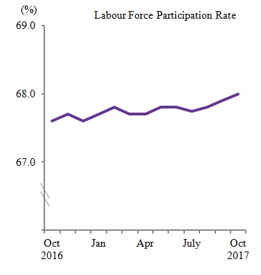 Labour force participation rate in October 2017 was 68.0 per cent, rose 0.1 percentage point compared to the previous month.