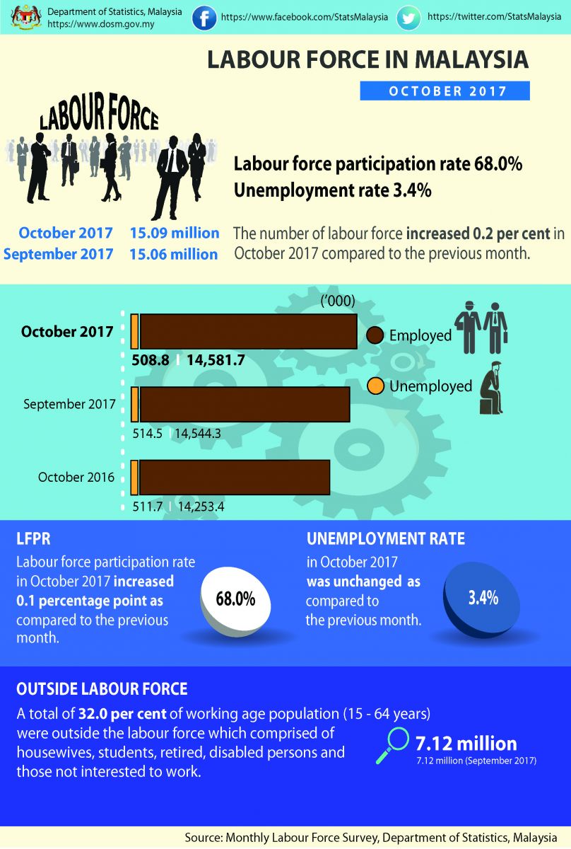 Year-on-year showed that labour force participation rate in October 2017 increased by 0.4 percentage point.