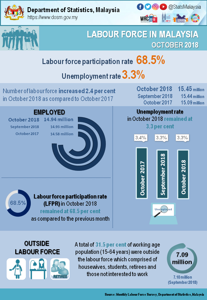 Key Statistics of Labour Force in Malaysia, October 2018