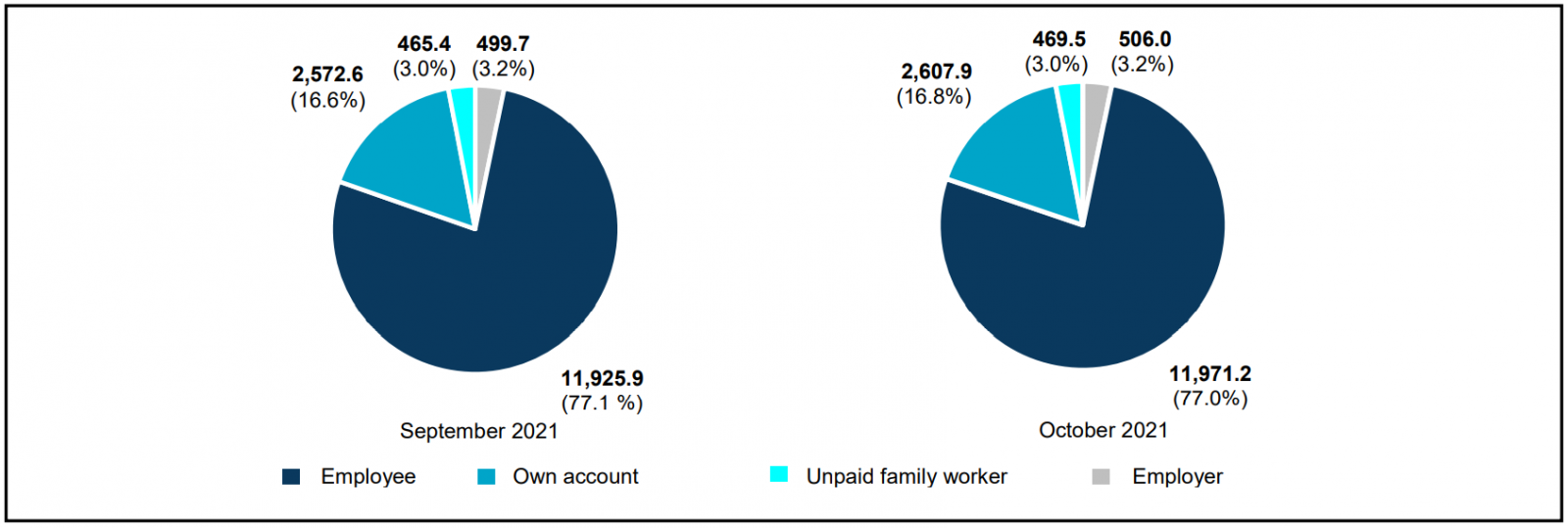 Chart 2: Employed person by status in employment, September and October 2021