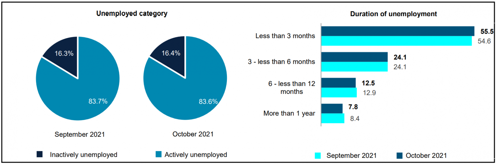 Chart 4: Unemployed category and duration of unemployment, September and October 2021