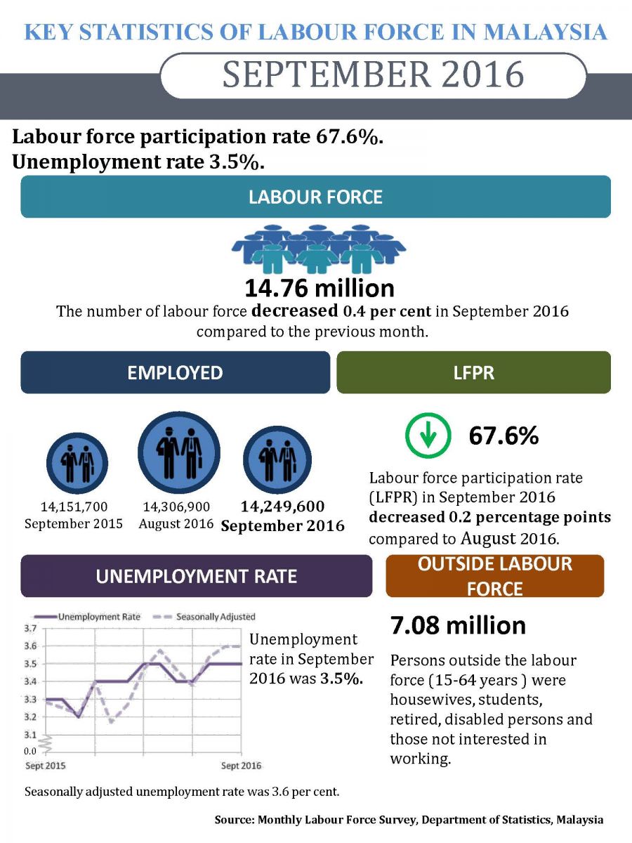 Year-on-year comparison showed that labour force participation rate in September 2016 fell 0.3 percentage points compared to September 2015.
