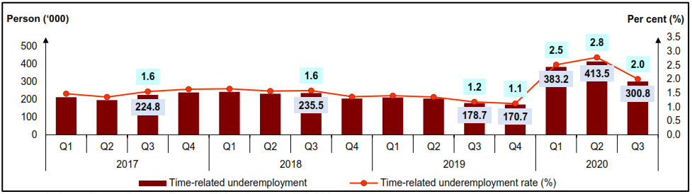 Chart A1: Time-related underemployment, Q1 2017 – Q3 2020