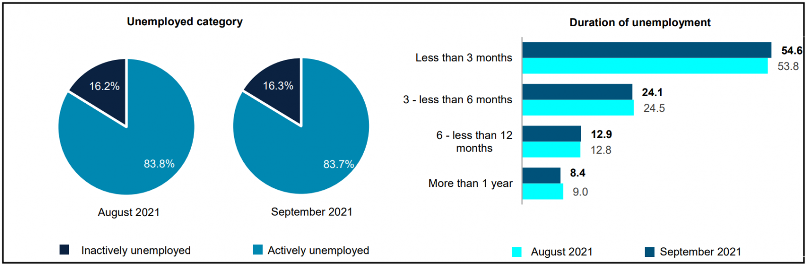 Chart 4: Unemployed category and duration of unemployment, August and September 2021
