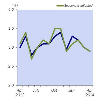 | Labour force participation rate marked at 67.3 per cent in April 2014, went up from 66.9 per cent in the previous month. The increase of 0.4 percentage point is an extension of the increase of population in the labour market by 0.5 per cent. Those people aged 20-24 years was the main contributor to this increment, that amounted to 103,700 persons. | Year-on-year comparison showed that the labour force participation rate was higher 0.9 percentage point than 66.4 per cent in April 2013. |
