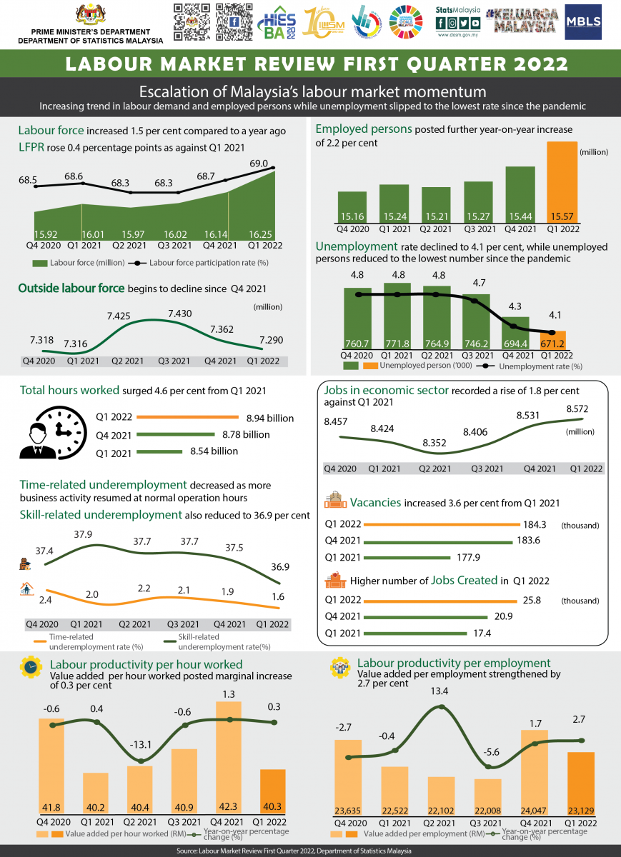 The full publication of LMR Q1 2022 is also accessible and downloadable free of charge through the eStatistik application in DOSM web page, www.dosm.gov.my.