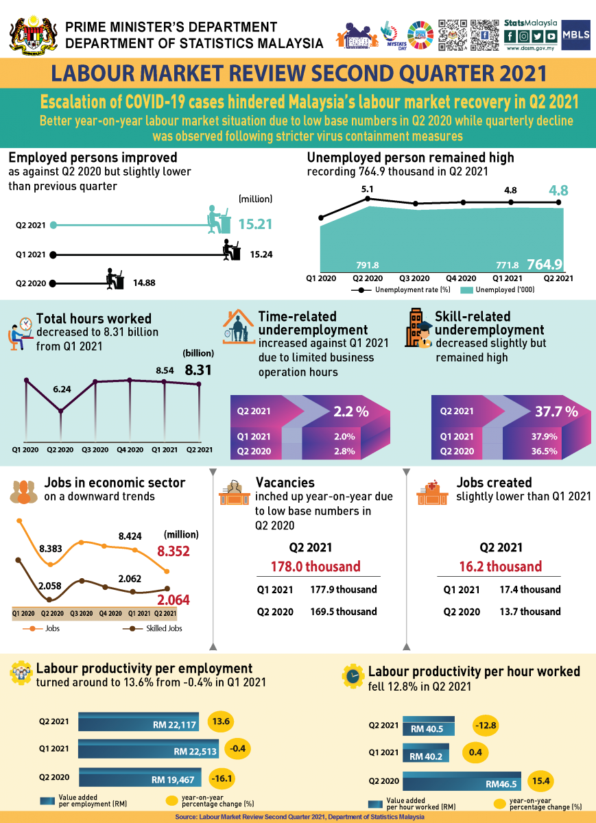 The full publication of LMR Q2 2021 is also accessible and downloadable free of charge through the eStatistik application in DOSM web page, www.dosm.gov.my.