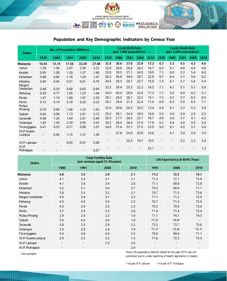 YAB Prime Minister said, “The findings of MyCensus 2020 will be used as a new benchmark for the Government to outline policies related to the development of people's well-being, in addition to providing comprehensive input in the implementation of existing policies such as Vision 2030 Common Prosperity, 12th Malaysia Plan, the 2030 Agenda for Sustainable Development Goals (SDGs)”. The findings of MyCensus 2020 also serve as a catalyst towards achieving the vision of the Keluarga Malaysia.