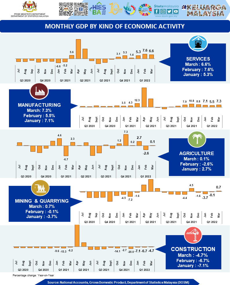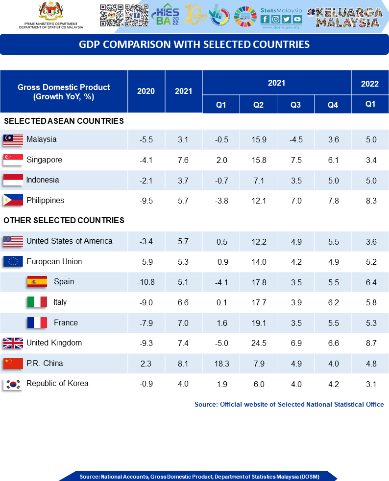 The full publication of Gross Domestic Product, First Quarter 2022 can be downloaded through eStatistik portal.