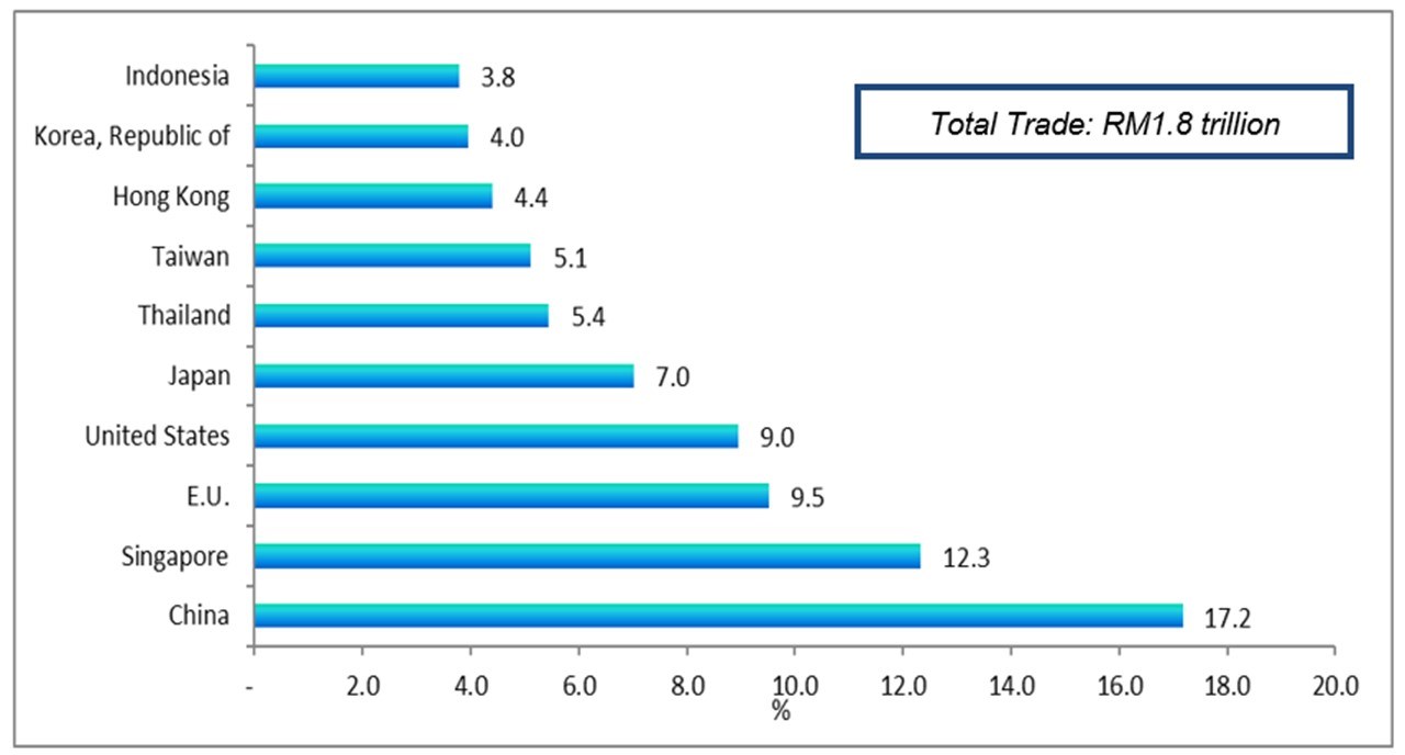 The following charts show Malaysia's major trading partners for  January - December 2019.