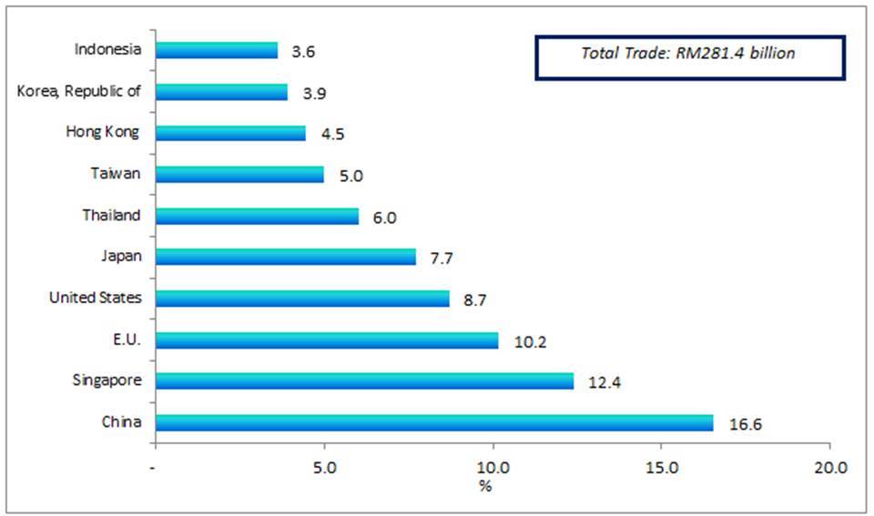 The following charts show Malaysia's major trading partners for January - February 2019.