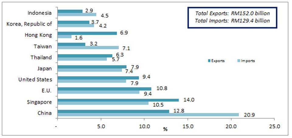 - On a y-o-y basis, the decrease in exports was attributed to lower exports to Hong Kong (-RM636.6 million), Indonesia (-RM632.9 million), the United States (-RM616.0 million) and Viet Nam (-RM532.8 million).