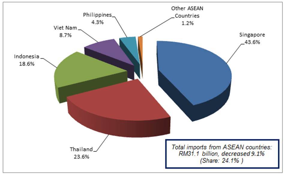 Imports from Singapore decreased RM1.2 billion (-17.2%) to record RM6.0 billion as compared to the previous year.