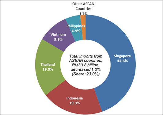Imports from Singapore amounted to RM6.2 billion shot up RM230.9 million (+3.9%) from a year ago. The main product which attributed to the growth was refined petroleum products (30.6% of total imports), increased RM298.3 million or 18.7% to RM1.9 billion.
