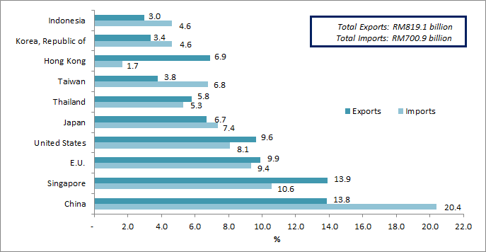 (-RM910.0 million), Saudi Arabia (-RM818.7 million) and Republic of Korea (-RM708.0 million). However, imports increased from Australia (+RM757.0 million) and the United States (+RM435.4 million).