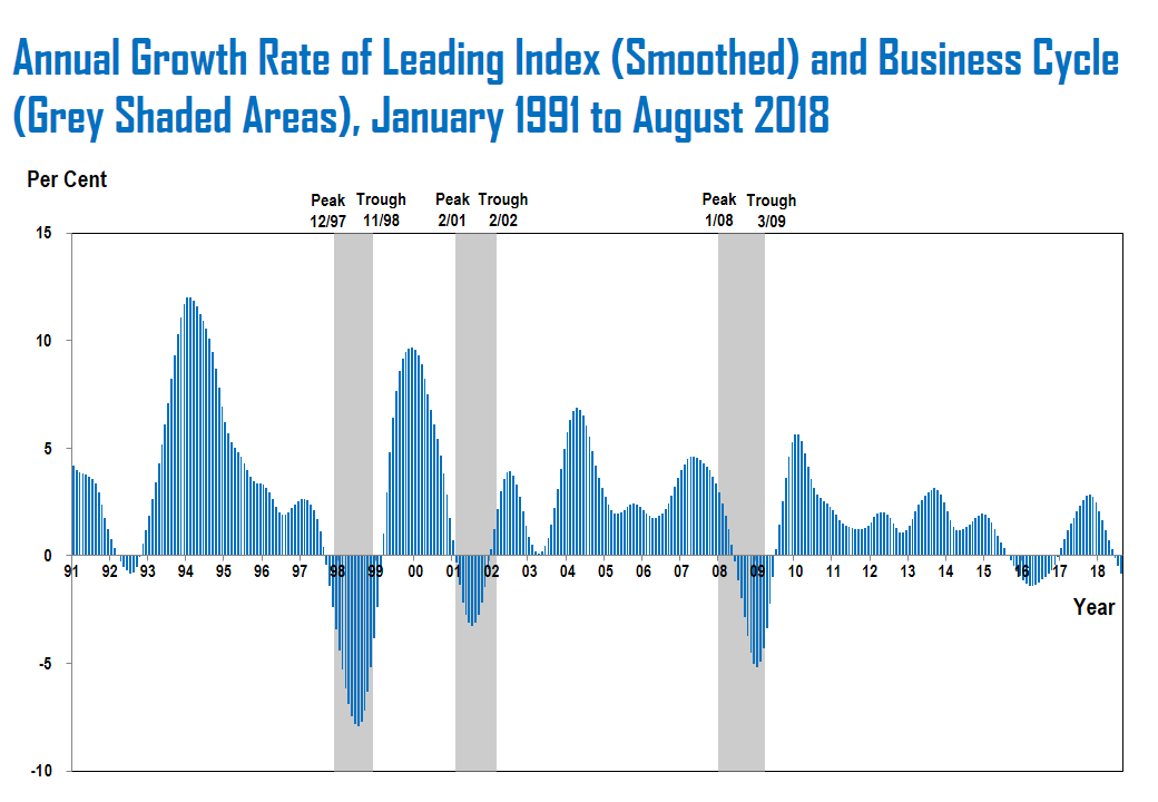 The Coincident Index (CI) is a measure of the overall current economic performance. The CI decreased 0.3 per cent in August 2018 with Capacity Utilisation in Manufacturing sector (-0.3%) was the main component that led to the decrease. The annual change of CI grew 3.6 per cent in the reference month.