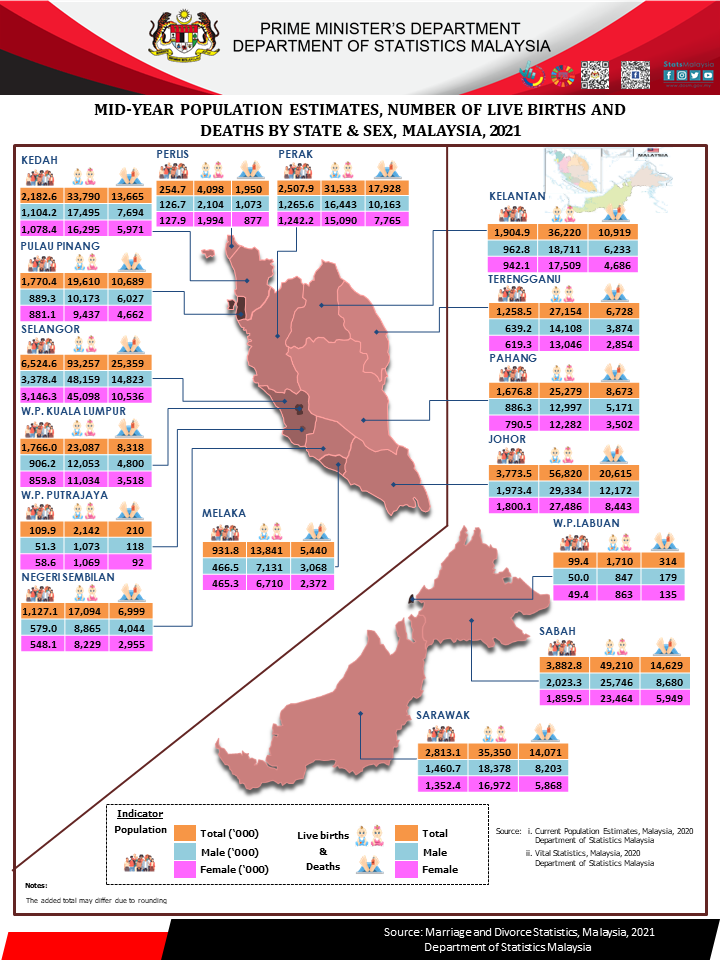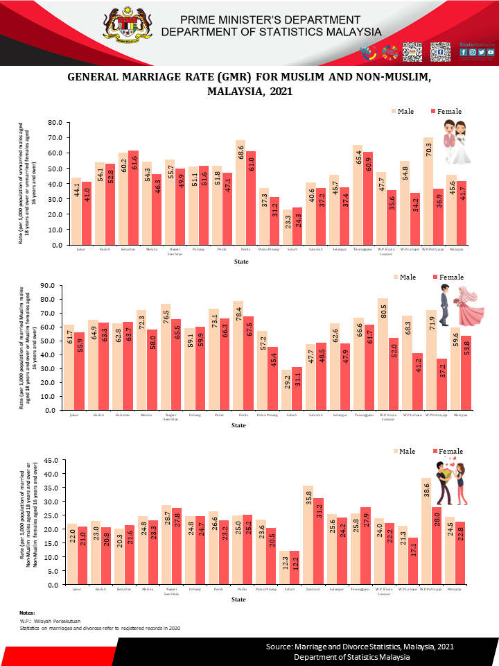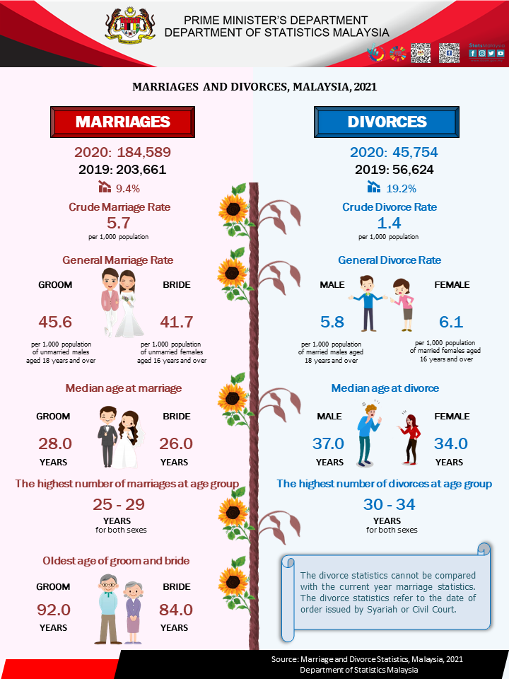 The full publication of the Marriage And Divorce, Malaysia, 2021 can be downloaded from eStatistik portal.
