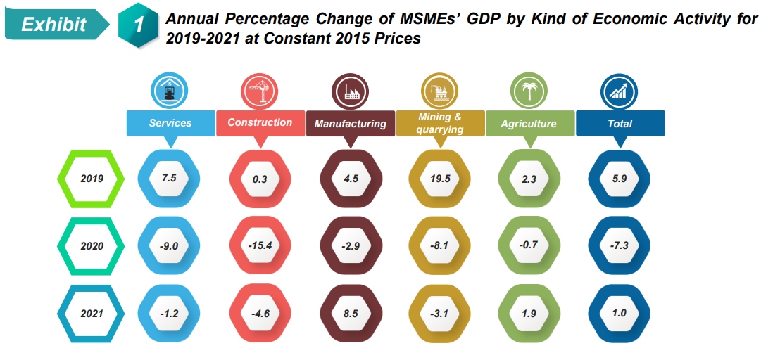 Nevertheless, value added of MSMEs in the Mining & quarrying sector contracted 3.1 per cent (2020: -8.1%) while the Construction sector narrowed 4.6 per cent from negative 15.4 per cent in the previous year.