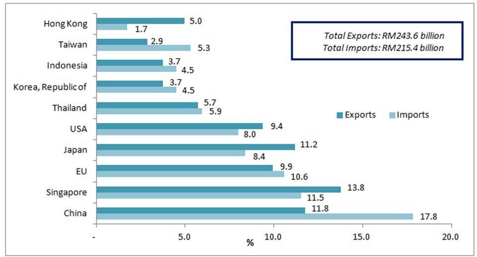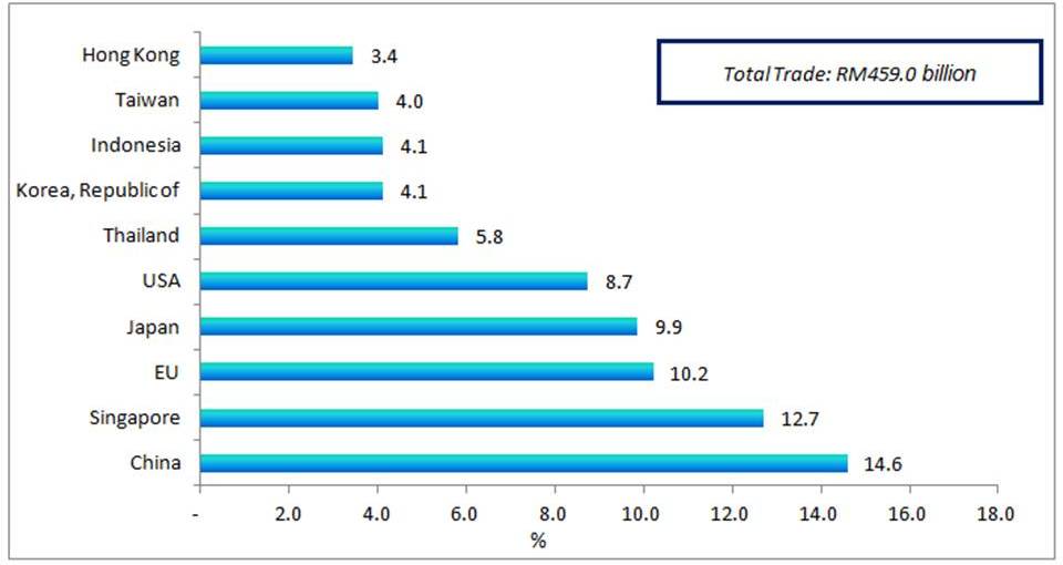 The following charts show Malaysia's major trading partners for January - April 2015.
