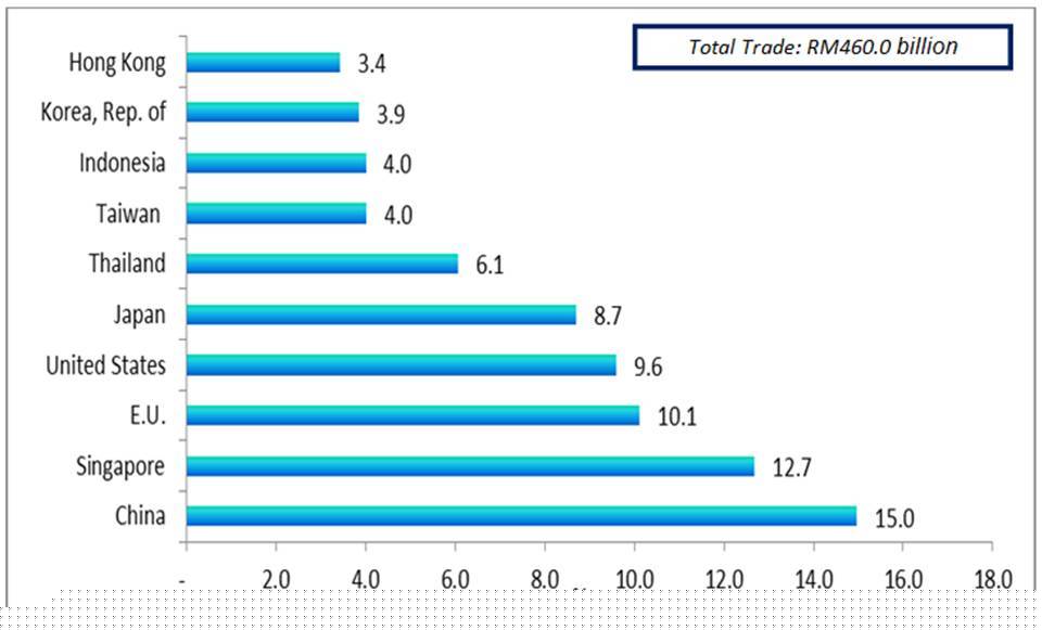 The following charts show Malaysia's major trading partners for January - April 2016.