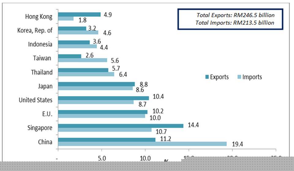 - On a y-o-y basis, the decrease in imports were mainly from Singapore (-RM712.3 million), Viet Nam (-RM583.2 million), India (-RM341.4 million), United Arab Emirates (-RM328.8 million) and South Africa (-RM319.6 million).