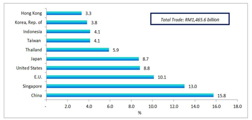 The following charts show Malaysia's major trading partners for January - December 2015.