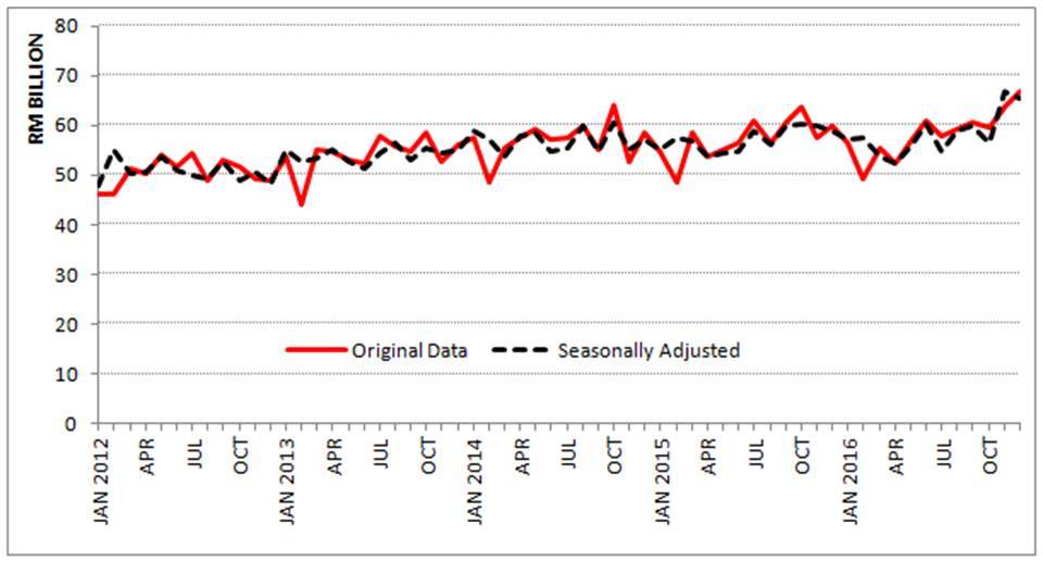 On a y-o-y basis, imports increased 11.5% from RM59.9 billion. The growth in imports was contributed by intermediate goods, capital goods and consumption goods.