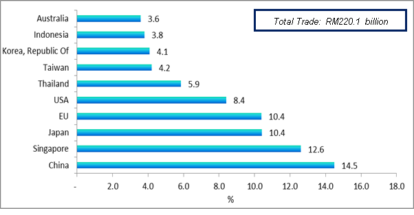 The following charts show Malaysia's major trading partners for January - February 2015.