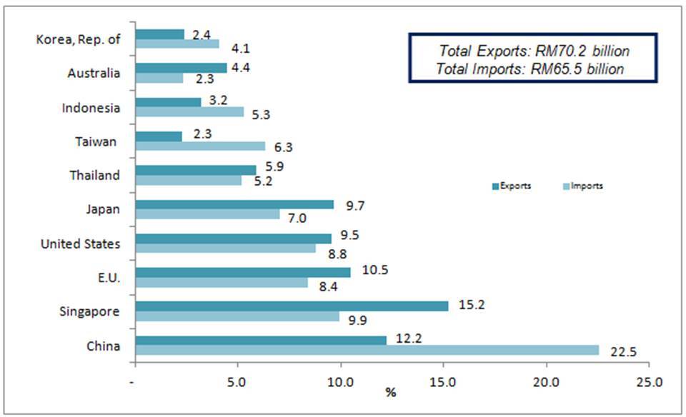 The following charts show Malaysia's major trading partners for January 2017.