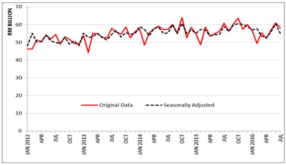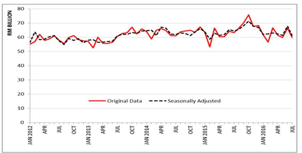- On a m-o-m basis, imports also dropped RM3.0 billion (-4.9%) from RM60.9 billion. In seasonally adjusted terms, imports decreased 9.2%.