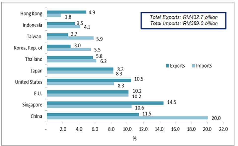 The following charts show Malaysia's major trading partners for January – July 2016.