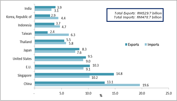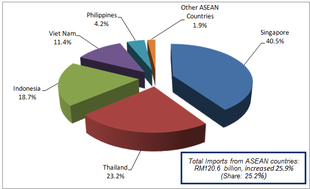 - On a y-o-y basis, higher imports were mainly from the China (+RM2.8 billion), Singapore (+RM2.4 billion), European Union (+RM2.0 billion), United States (+RM1.2 billion) and Indonesia (+RM1.0 billion).