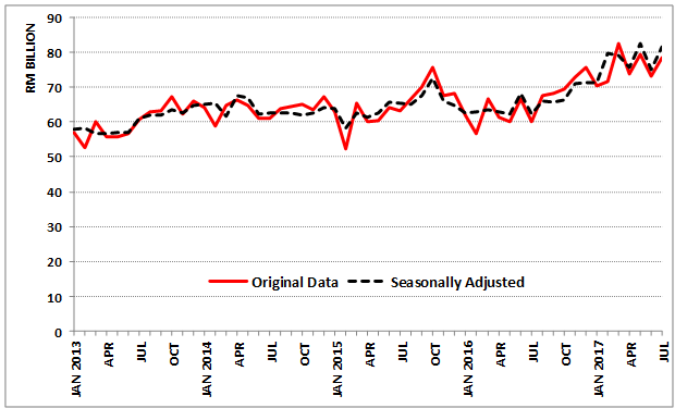 - On a year-on-year (y-o-y) basis, exports in July 2017 posted a stronger growth than imports for the third straight month which is 30.9% to RM78.6 billion.