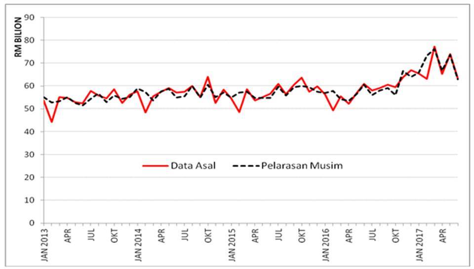 On a m-o-m basis seasonally adjusted terms, imports declined RM10.6 billion (-14.4%) to RM63.0 billion.