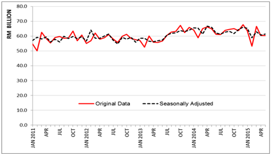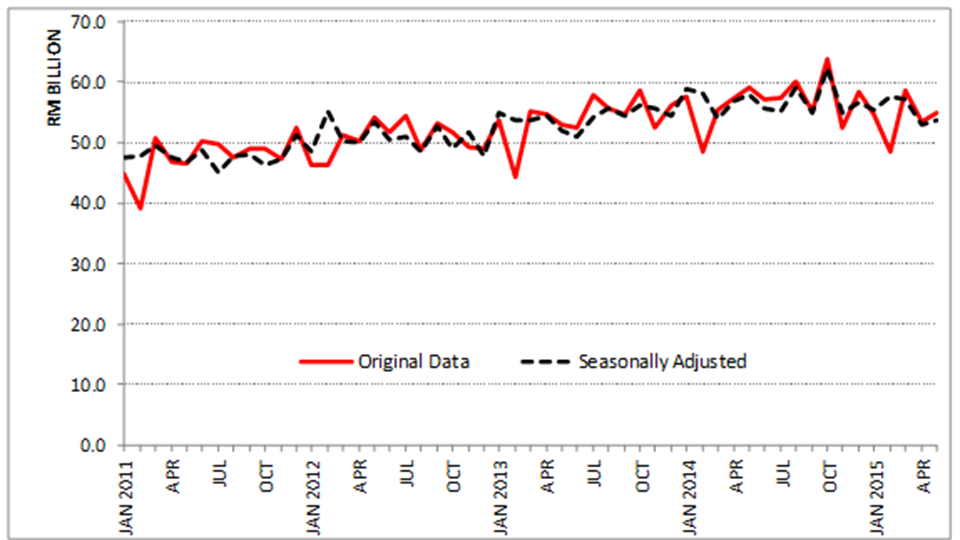 - On a m-o-m basis, imports increased RM1.4 billion (+2.7%) from RM53.5 billion. In seasonally adjusted terms, imports expanded by 1.5%.