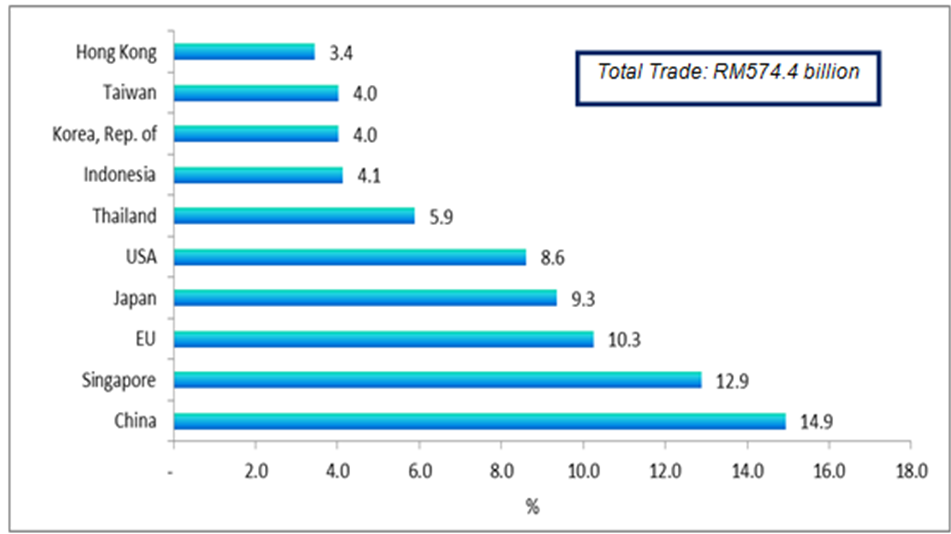 The following charts show Malaysia's major trading partners for January - May 2015.