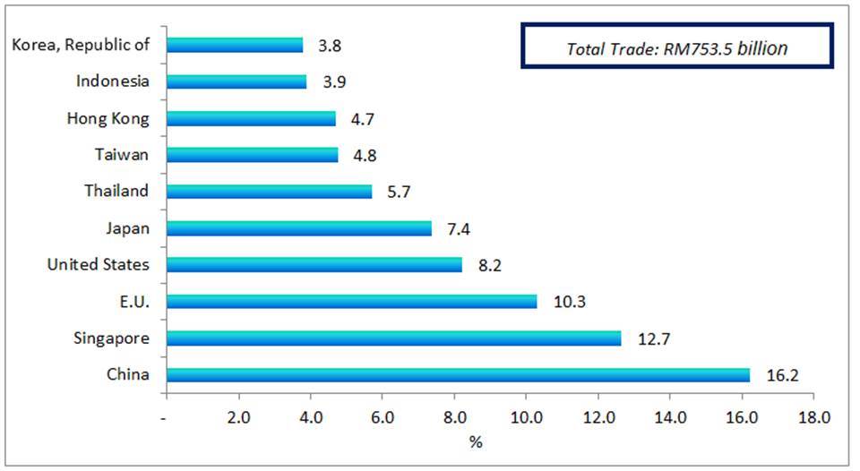The following charts show Malaysia's major trading partners for January - May 2018.