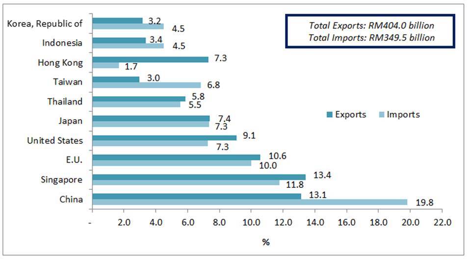 - On a y-o-y basis, higher imports were mainly from China (+RM1.13 billion), Taiwan (+RM1.11 billion), Singapore (+RM976.3 million), Saudi Arabia (+RM676.6 million) and Republic of Korea (+RM561.6 million).