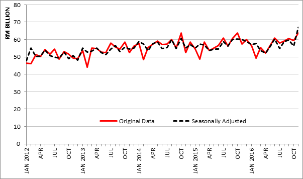 On a m-o-m basis, imports rose RM4.4 billion or 7.3% to RM63.8 billion. The increase in imports was attributed to intermediate goods, consumption goods and capital goods.