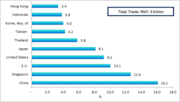 The following charts show Malaysia's major trading partners for January – November 2016.