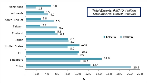 - On a y-o-y basis, the higher exports were mainly to Singapore (+RM1.4 billion), China (+RM1.2 billion), European Union (+RM793.7 million), and Viet Nam (+RM700.8 million).