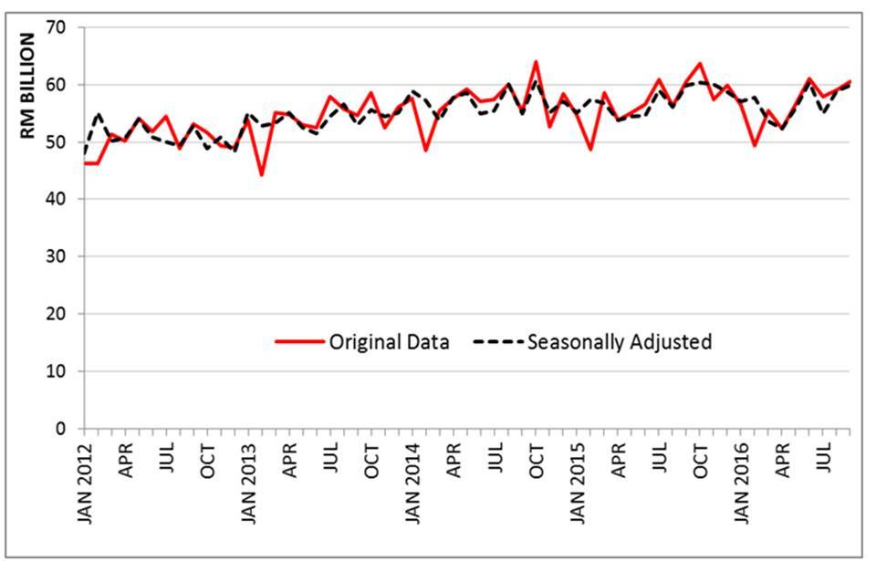 On a m-o-m basis seasonally adjusted terms, imports increased RM961.2 million (+1.6%) to RM59.8 billion.