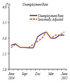 Unemployment rate was stable at 3.1% The unemployment rate was stable at 3.1 per cent in June 2015 compared to the previous month. Meanwhile, year-on-year comparison showed that the unemployment rate increased by 0.3 percentage points. The seasonally adjusted unemployment rate was 3.2 per cent, increased by 0.1 percentage points compared to the previous month.