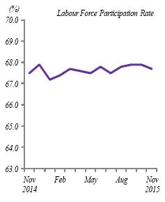 Labour force participation rate decreased to 67.7% The labor force participation rate decreased 0.2 percentage points to 67.7 per cent in November 2015 compared to the previous month. Year-on-year comparison showed that the labor force participation rate was higher by 0.2 percentage points compared to 67.5 percent in November 2014.