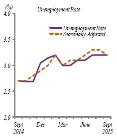 Unemployment rate remained at 3.2% The unemployment rate remained at 3.2 per cent similar with the previous month. Year-on-year comparison showed a rise in unemployment rate by 0.5 percentage points. The seasonally adjusted unemployment rate was 3.2 per cent, decreased by 0.1 percentage points compared to the previous month.