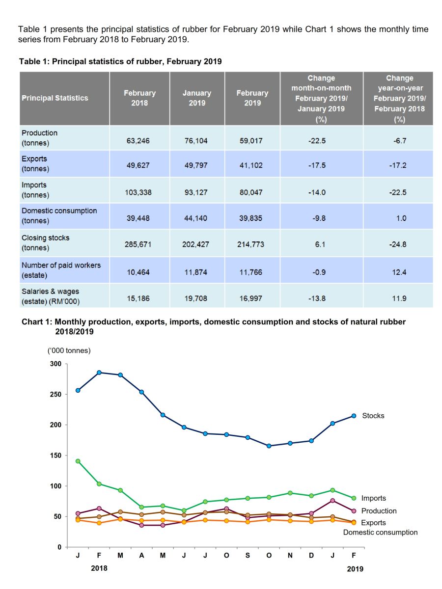 Natural rubber in February 2019 shrank by 22.5 per cent