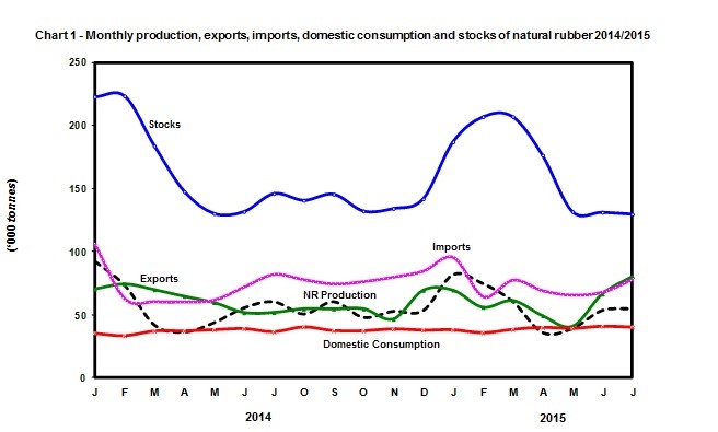 Monthly Rubber Statistics Malaysia, July 2015