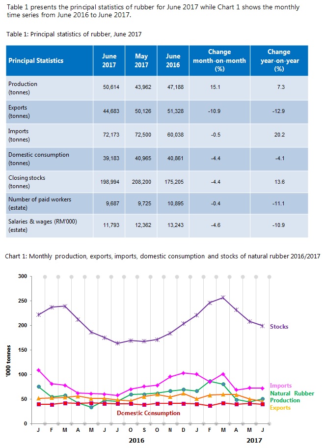 Production of natural rubber increased 15.1 per cent in June 2017