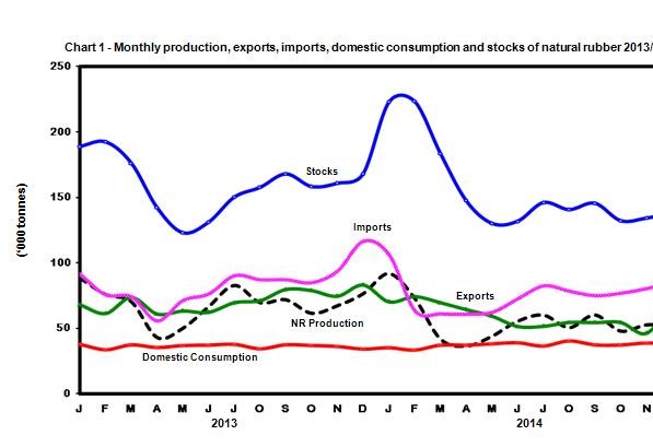 At the end of November 2014, the level of NR stocks was recorded at 132,048 tonnes, decreased by three tonnes (-0.0%) as compared to the previous month. NR stocks also dropped by 28,625 tonnes (-17.8%) when compared to the level of stocks a year ago.